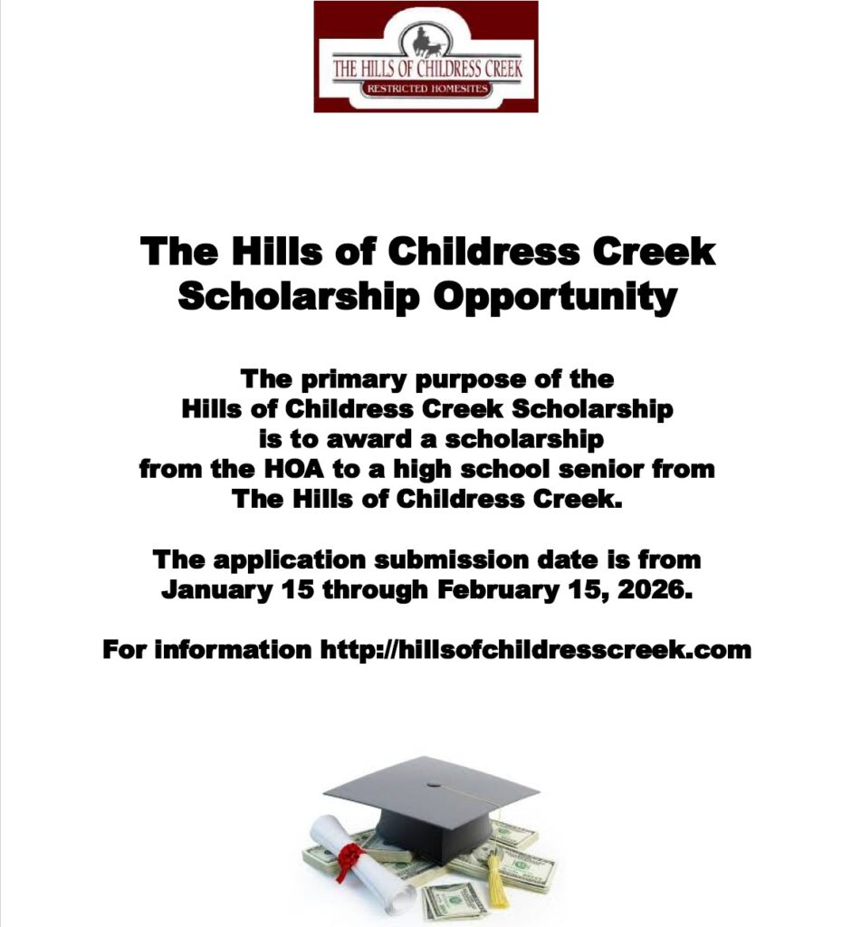 2026-2027 Hills of Childress Creek Scholarship Opportunity